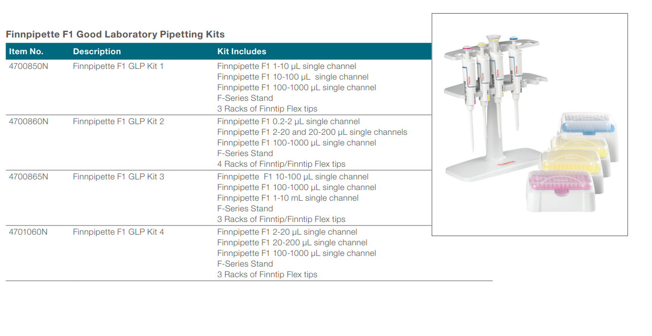 Finnpipette™ F1 Good Laboratory Pipetting (GLP) Kits